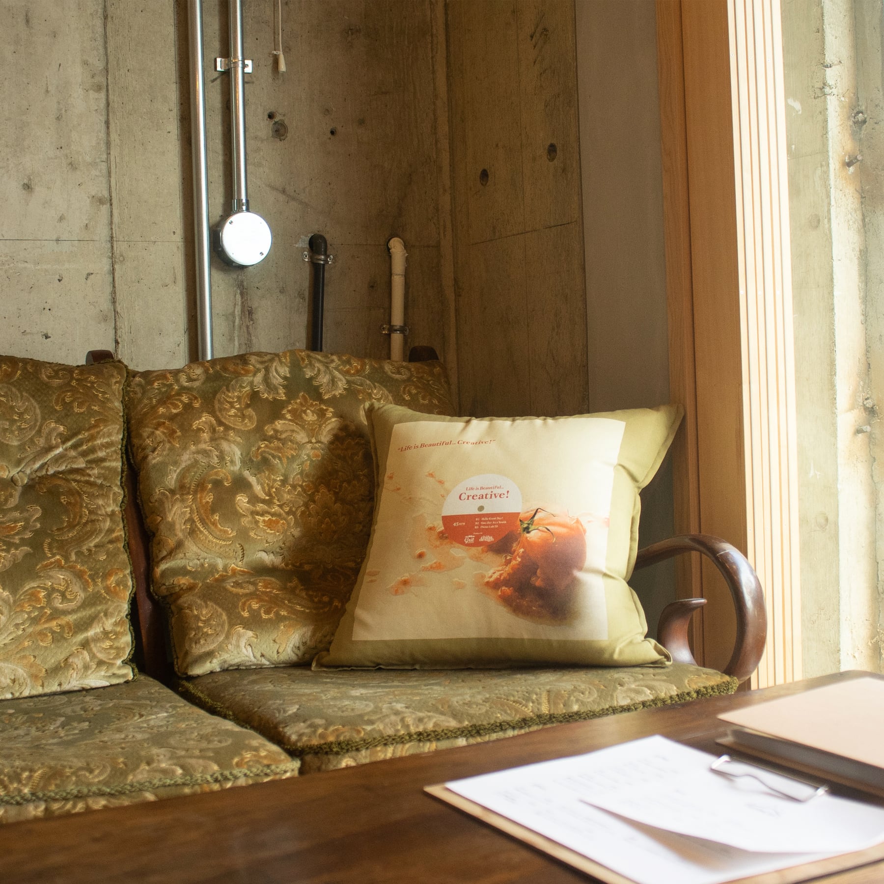 【カフェのような部屋に変身】Life is Beautiful…Creative! _ クッションカバー[ホワイト × フォト](CU00002-01)